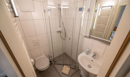 Die Ferienwohnungen sind über einen separaten Eingang zu erreichen und verfügen über einen Flur wie auch einen Parkplatz pro Wohnung auf dem Grundstück. Weitere Parkplätze mit Anmeldung gegen Gebühr.